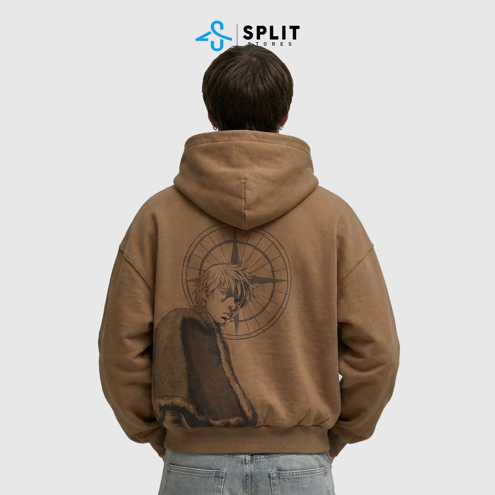 This fierce and resilient  hoodie draws its inspiration from Thorfinn, the battle-hardened warrior of Vinland Saga. It combines everyday comfort with details that reflect Thorfinn’s journey from vengeance to growth and inner peace.